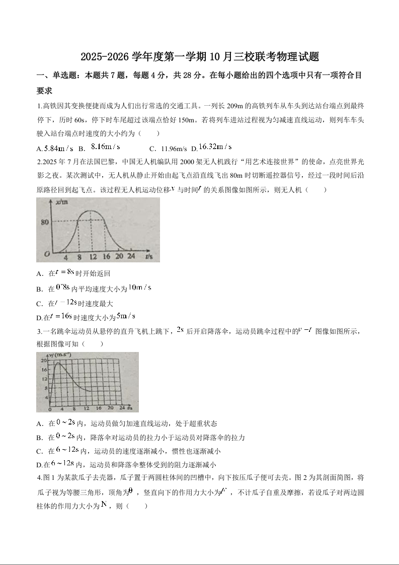 高三物理+答案--广东省揭阳市三校2026届高三上学期10月联考