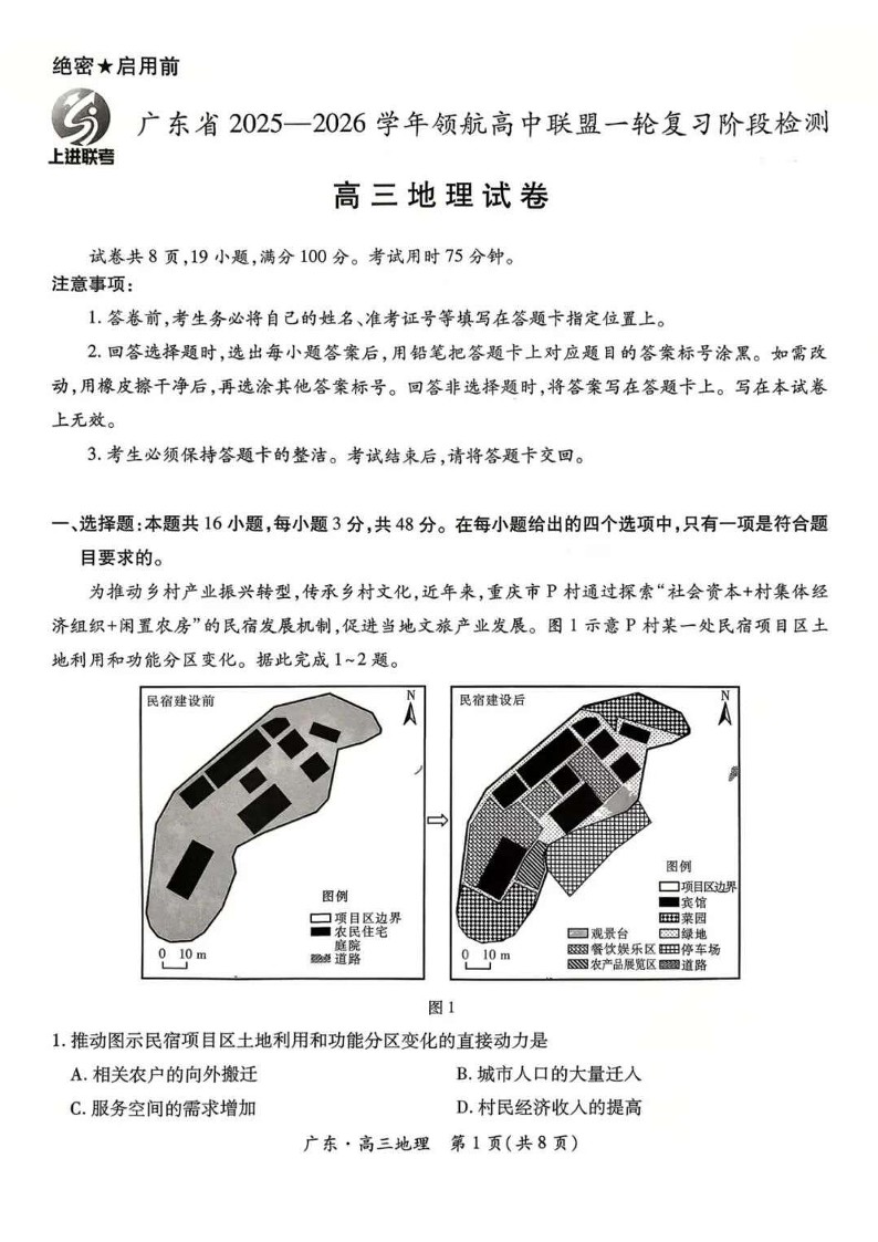 高三地理+答案--广东省上进联考领航高中联盟2026届高三10月一轮复习阶段检测