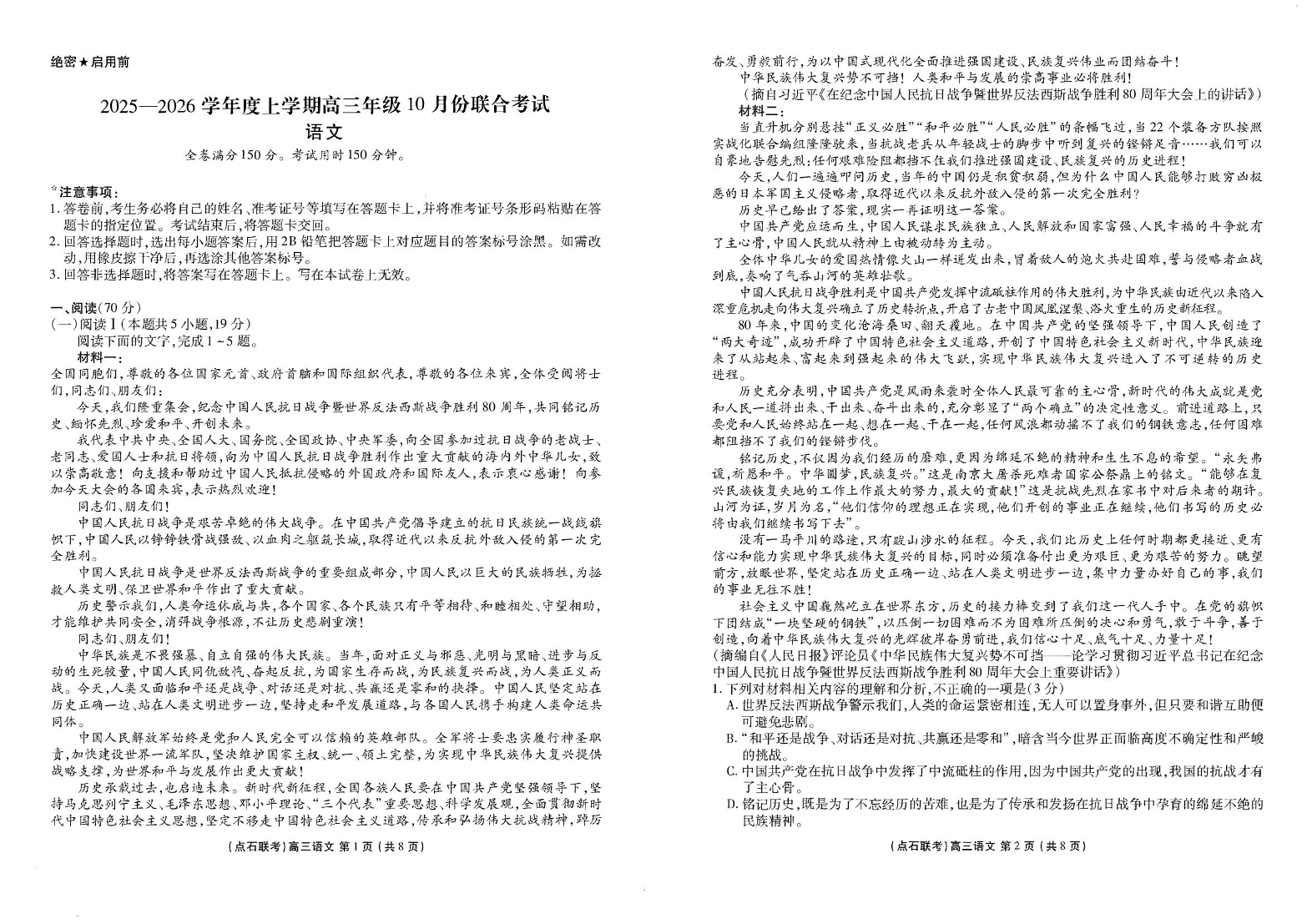 高三语文--辽宁省普通高中点石联考2026届高三上学期10月月考