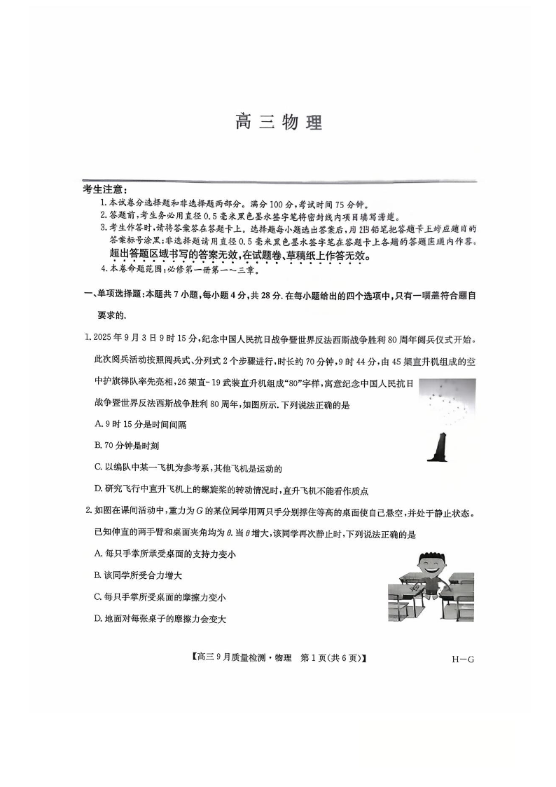 高三物理+答案--九师联盟2026届高三9月质量检测巩固卷(G)(10月联考)