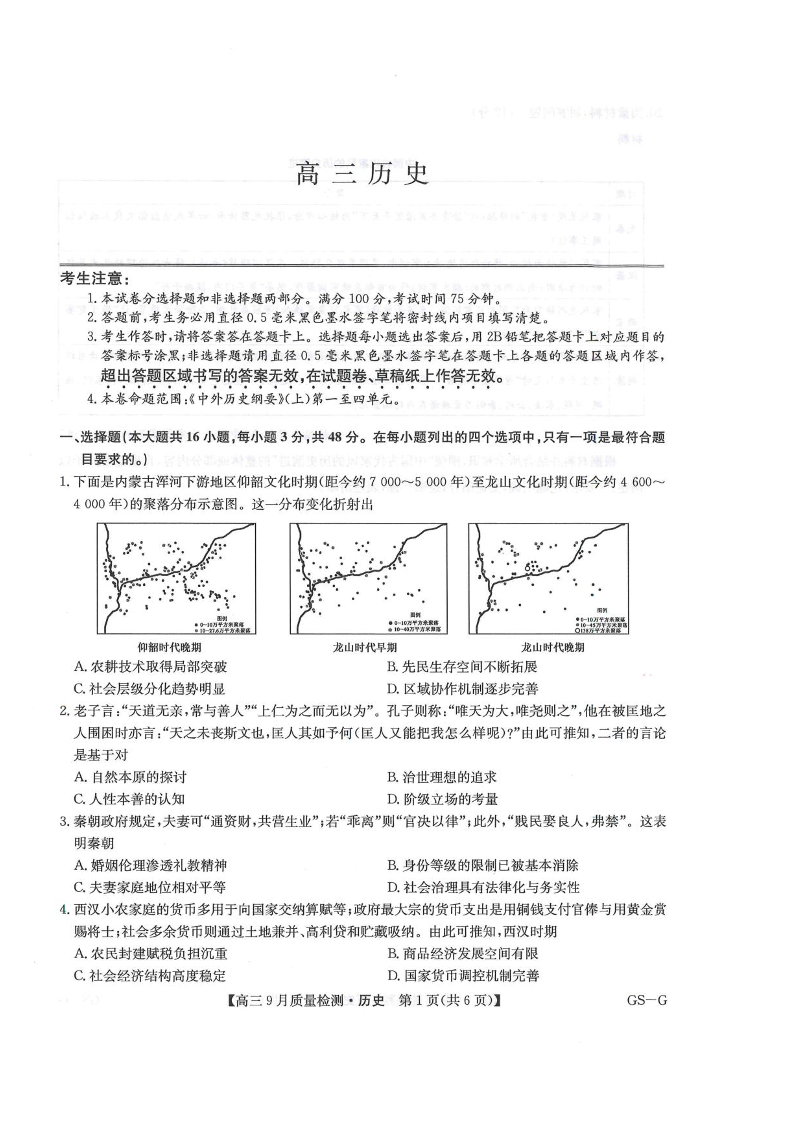 高三历史+答案--九师联盟2026届高三9月质量检测巩固卷(G)(10月联考)