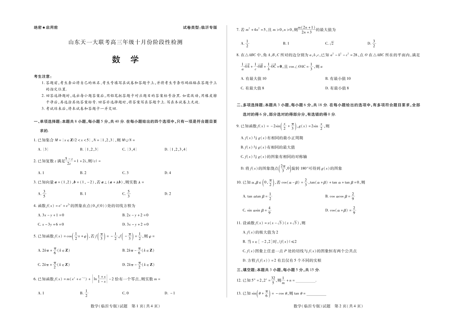 高三数学(临沂专版)--山东省天一大联考2026届高三年级十月份阶段性检测