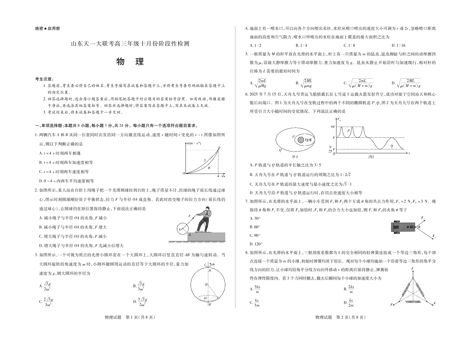 高三物理--山东省天一大联考2026届高三年级十月份阶段性检测