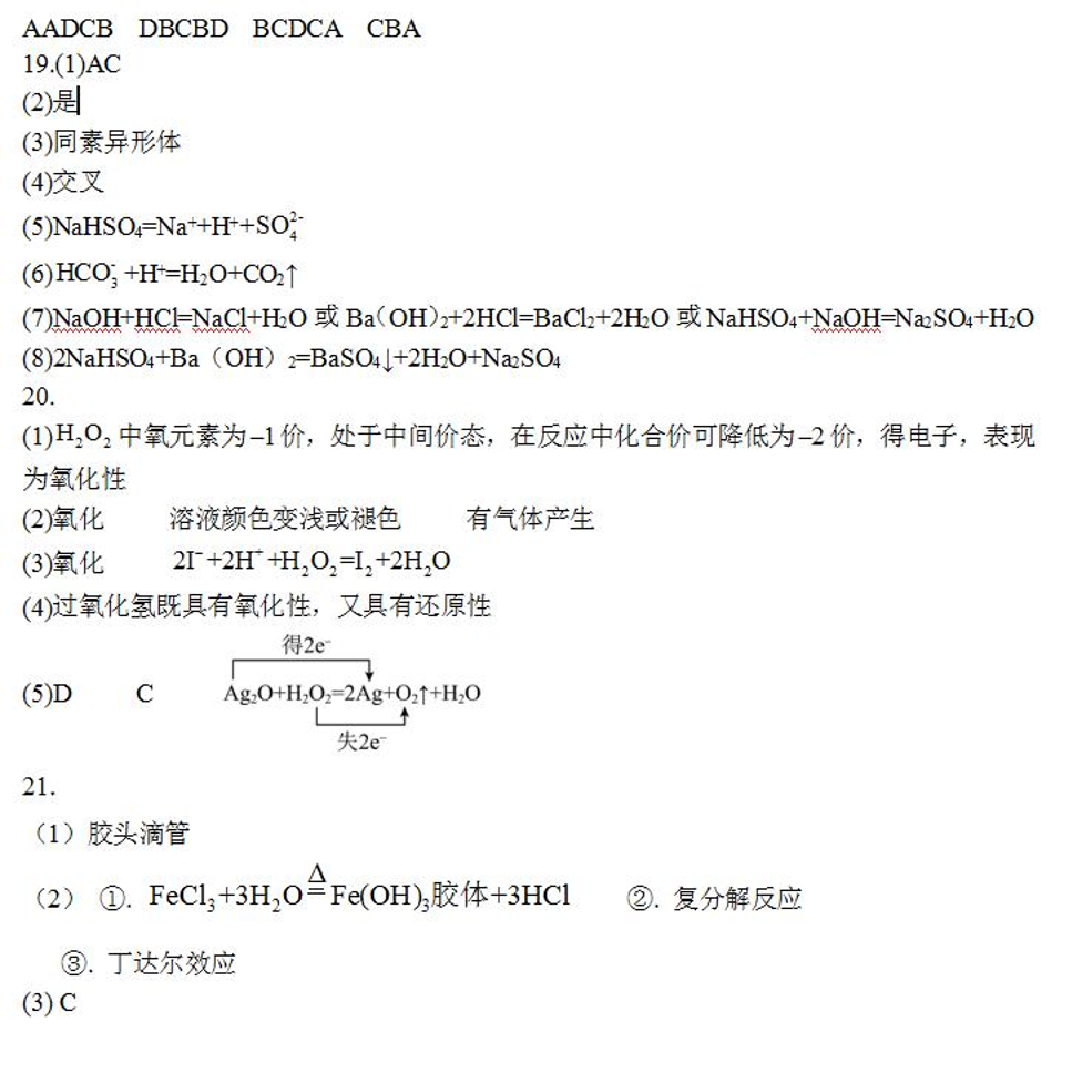高一化学答案--黑龙江省牡丹江市第二高级中学2025-2026学年高一上学期9月月考试题