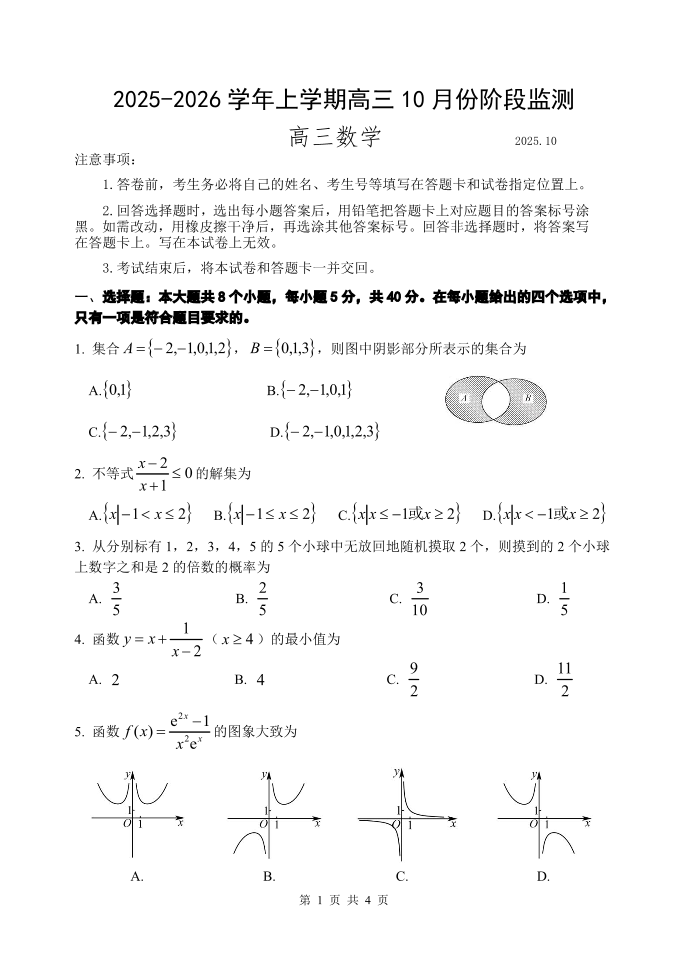 高三数学--潍坊部分区域2025.10高三阶段性统考