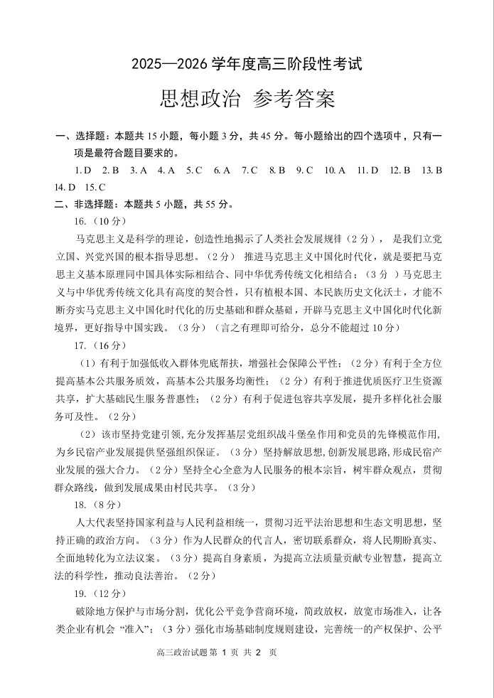 高三政治答案--潍坊部分区域2025.10高三阶段性统考