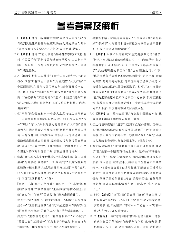 高一语文答案--辽宁省名校联盟2025年高一10月份联合考试