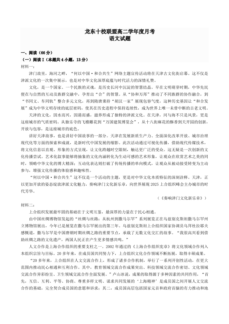 高二语文--黑龙江省龙东十校联盟2025-2026学年高二上学期10月月考