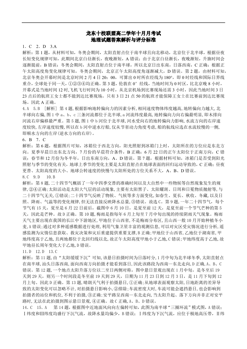 高二地理答案--黑龙江省龙东十校联盟2025-2026学年高二上学期10月月考