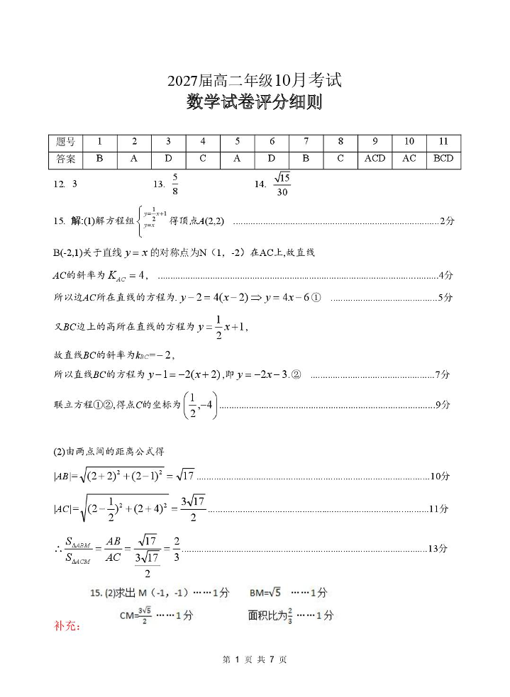 高二数学答案--湖北省云学联盟2025-2026学年高二上学期10月月考