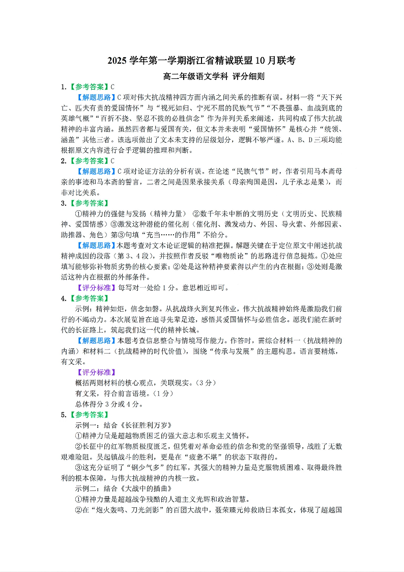 高二语文答案--浙江精诚联盟2025-2026学年高二上学期10月联考