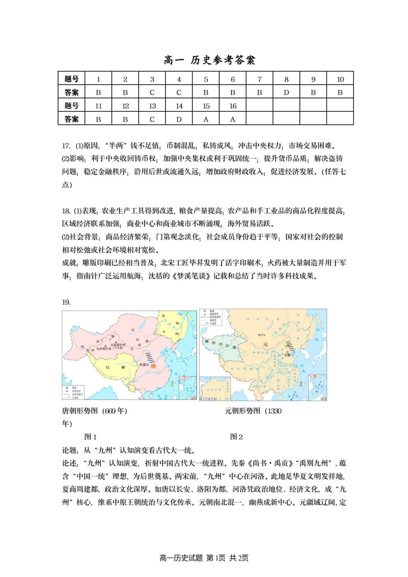 高一历史答案--江苏省连云港市赣榆区新海高级中学2025-2026学年高一上学期10月学业水平质量监测