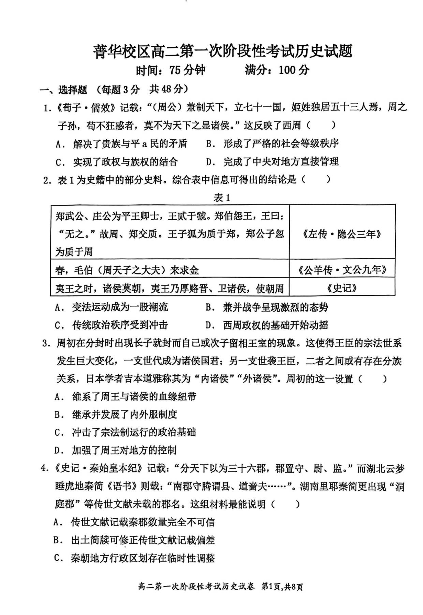 高二历史+答案--河南省许昌市禹州市第三高级中学2025-2026学年高二上学期9月月考