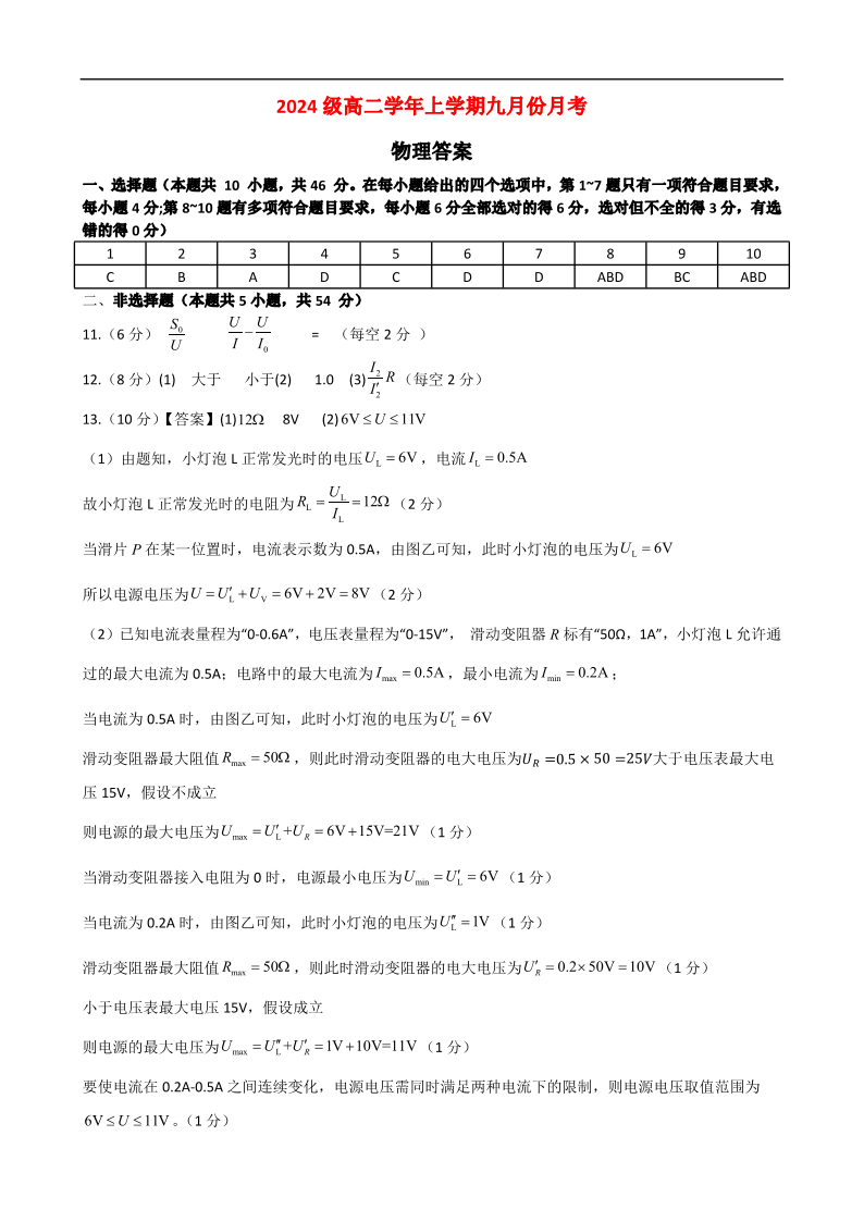 高二物理(致远班)答案--黑龙江省牡丹江市第一高级中学2025-2026学年高二上学期9月月考