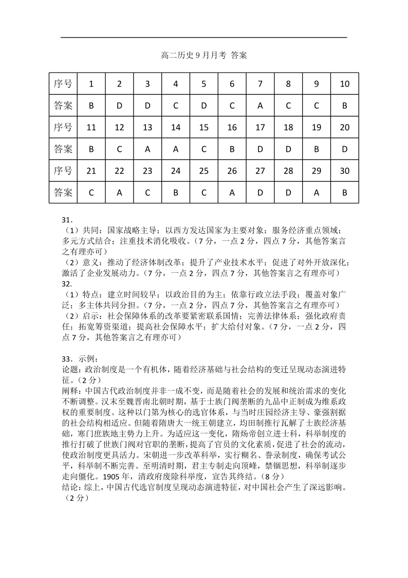 高二历史(平行班)答案--黑龙江省牡丹江市第一高级中学2025-2026学年高二上学期9月月考