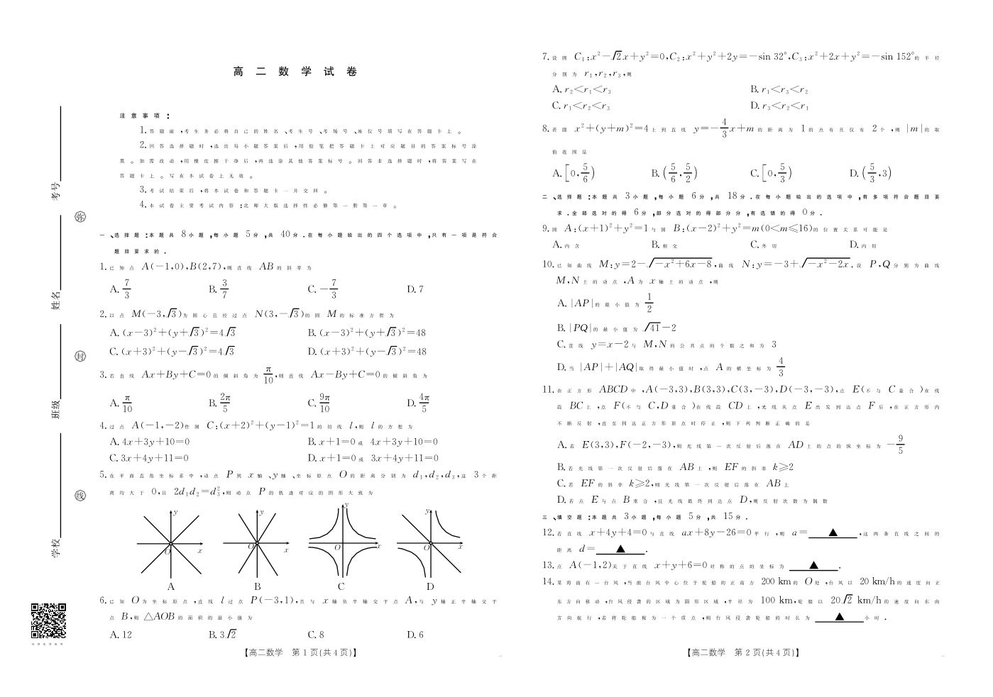 高二数学--江西省2025-2026学期高二上学期10月联考