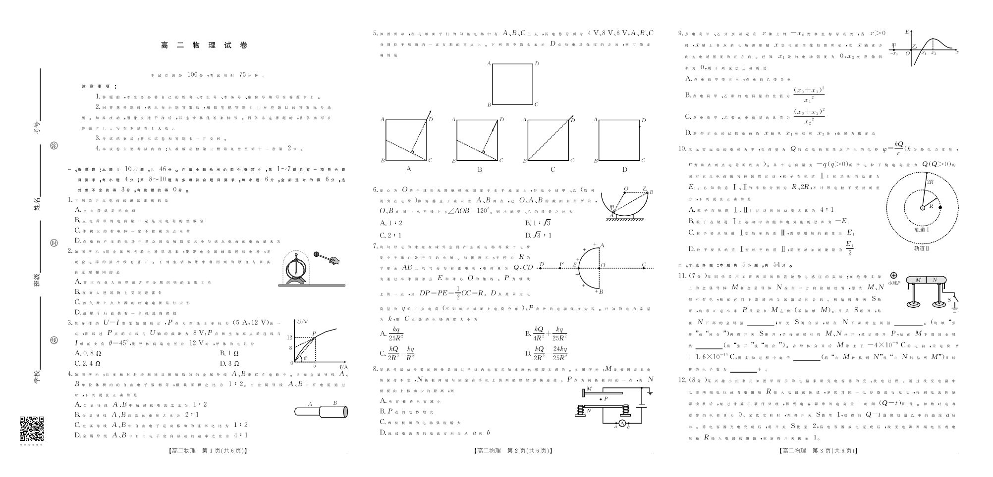 高二物理--江西省2025-2026学期高二上学期10月联考