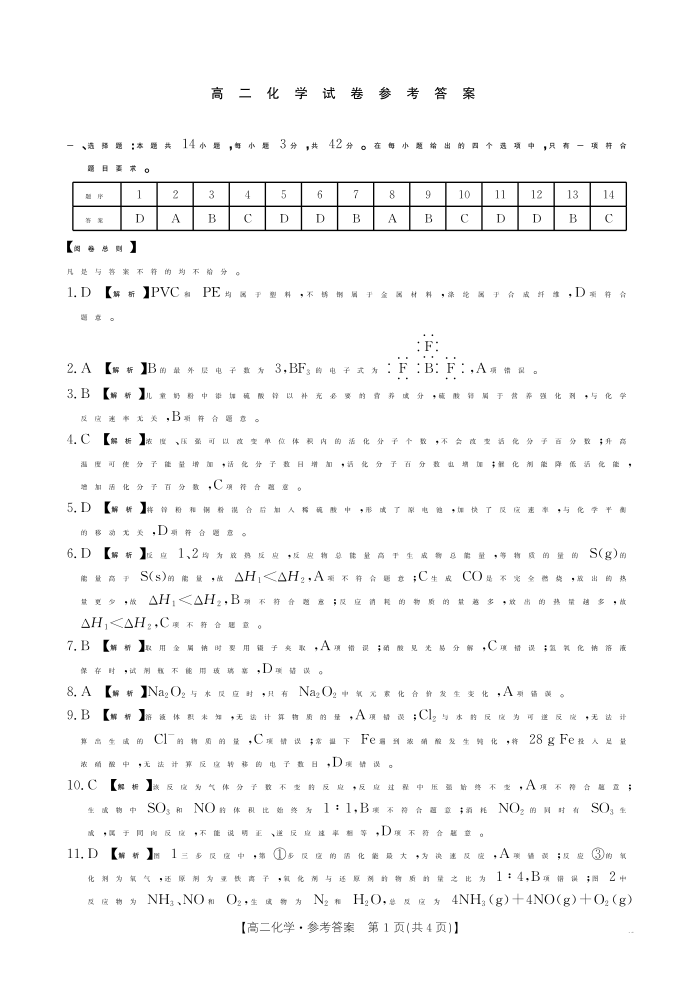 高二化学答案--江西省2025-2026学期高二上学期10月联考