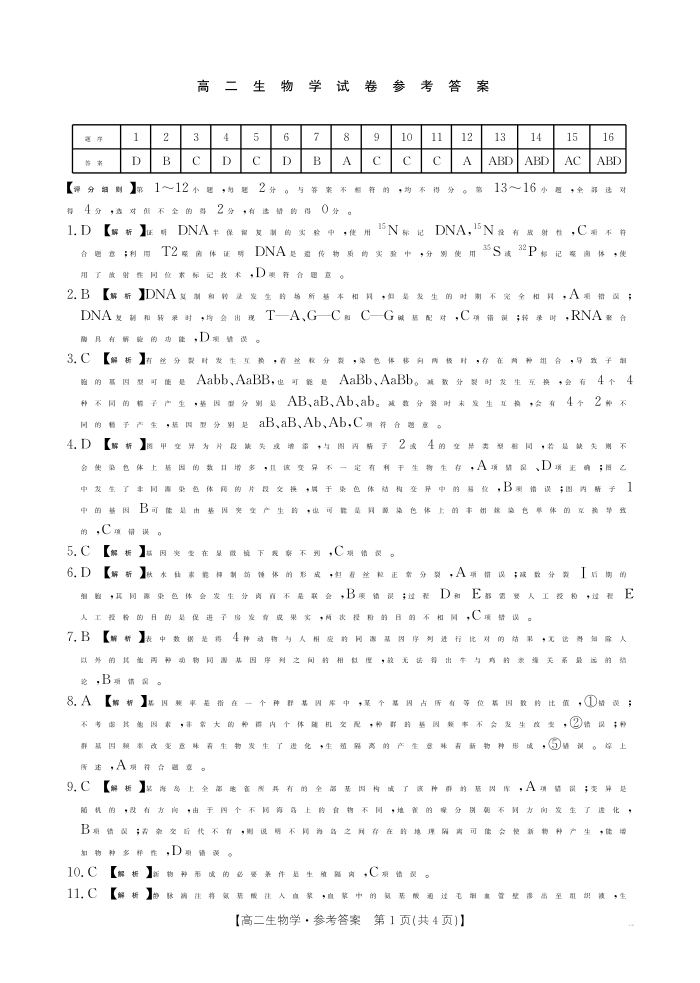 高二生物答案--江西省2025-2026学期高二上学期10月联考