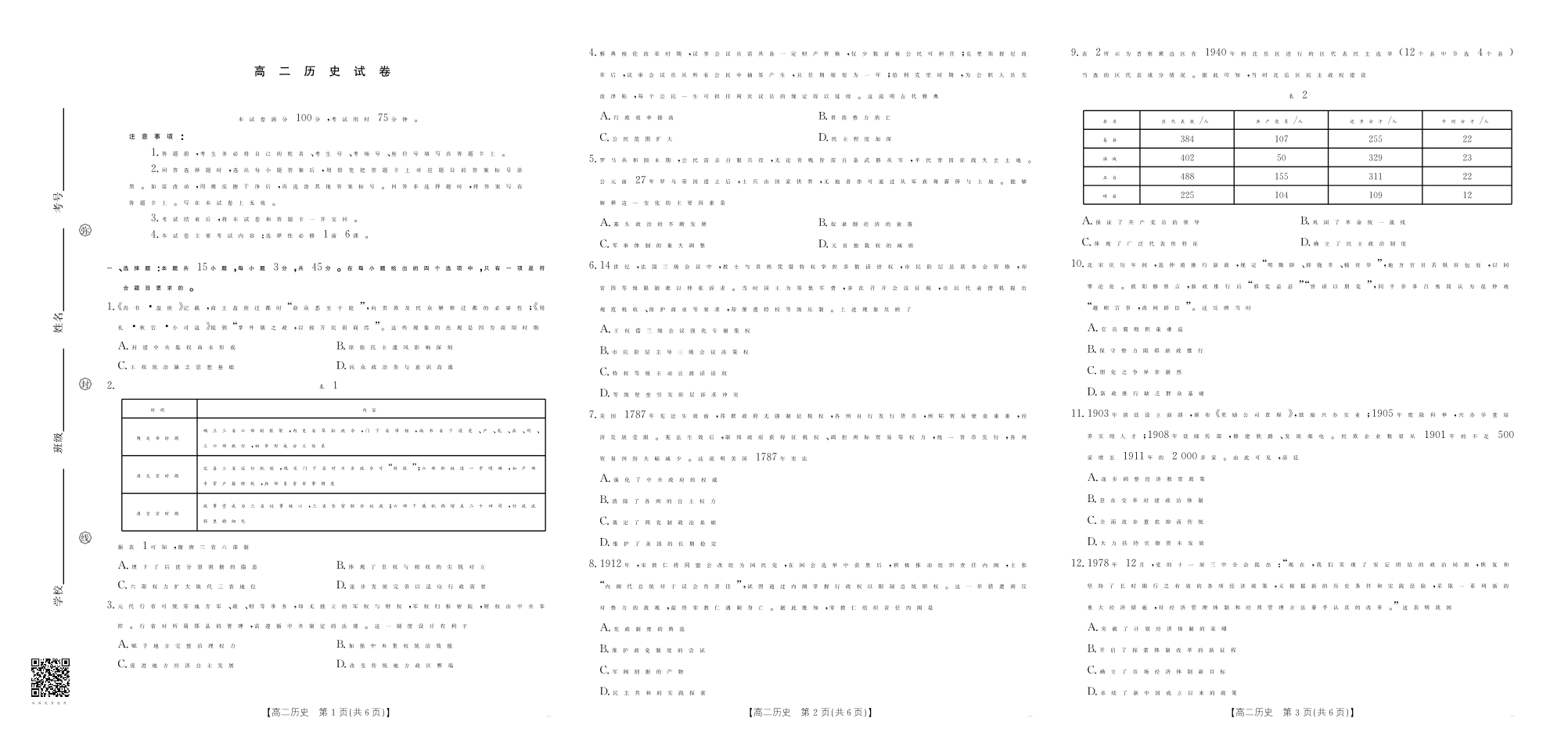 高二历史--江西省2025-2026学期高二上学期10月联考