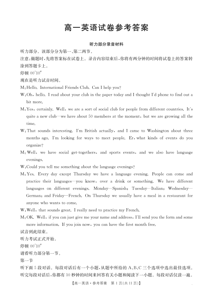 高一英语答案--江西省2025-2026学期高一上学期10月联考