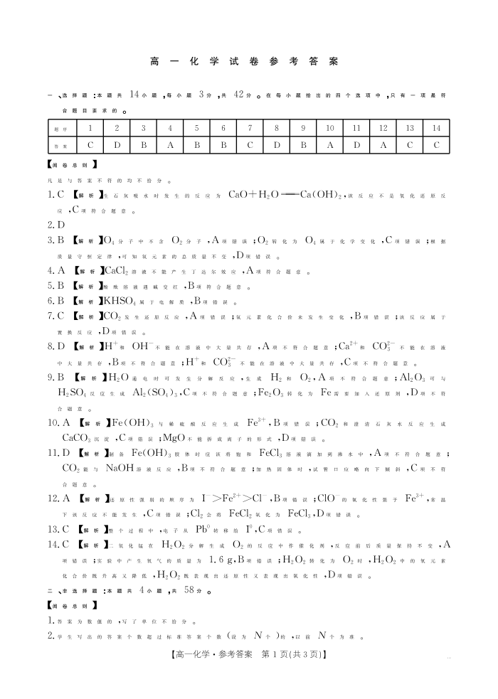 高一化学答案--江西省2025-2026学期高一上学期10月联考