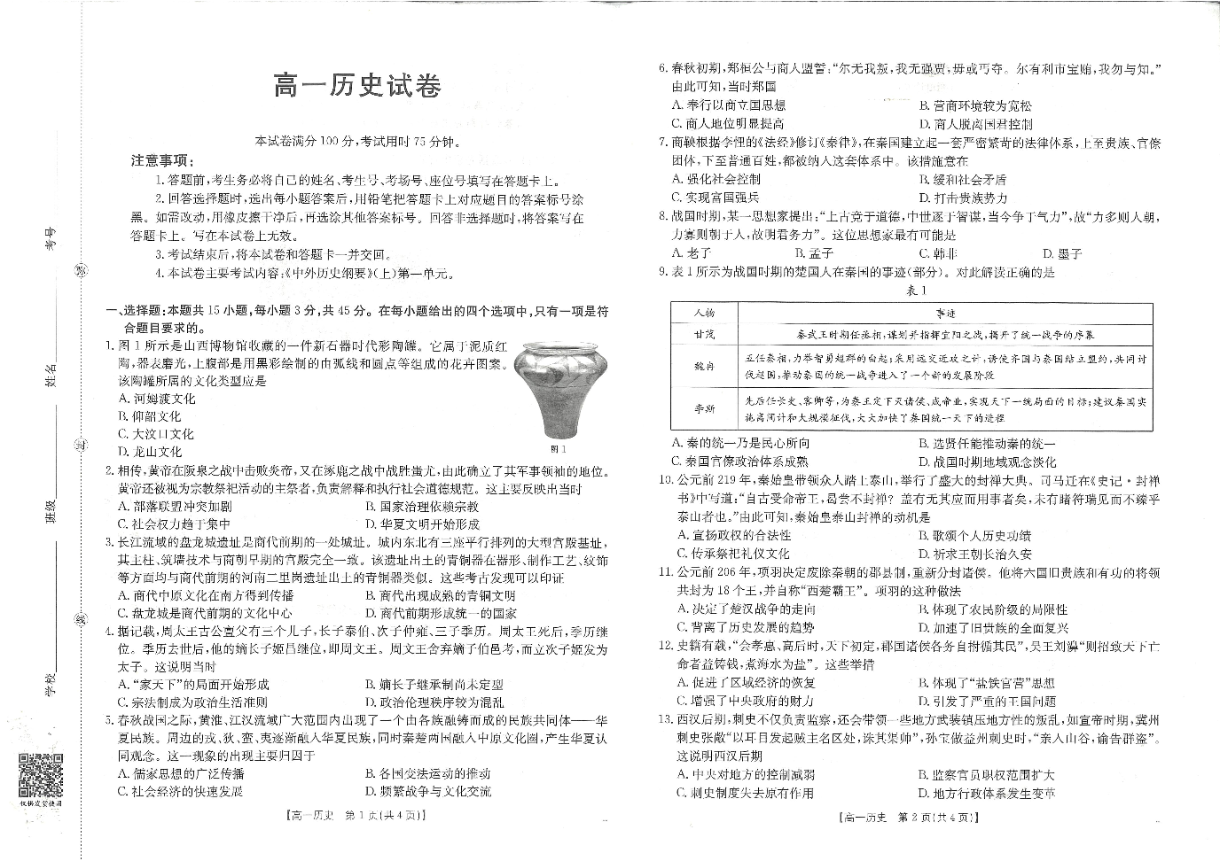 高一历史--江西省2025-2026学期高一上学期10月联考