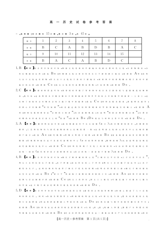 高一历史答案--江西省2025-2026学期高一上学期10月联考