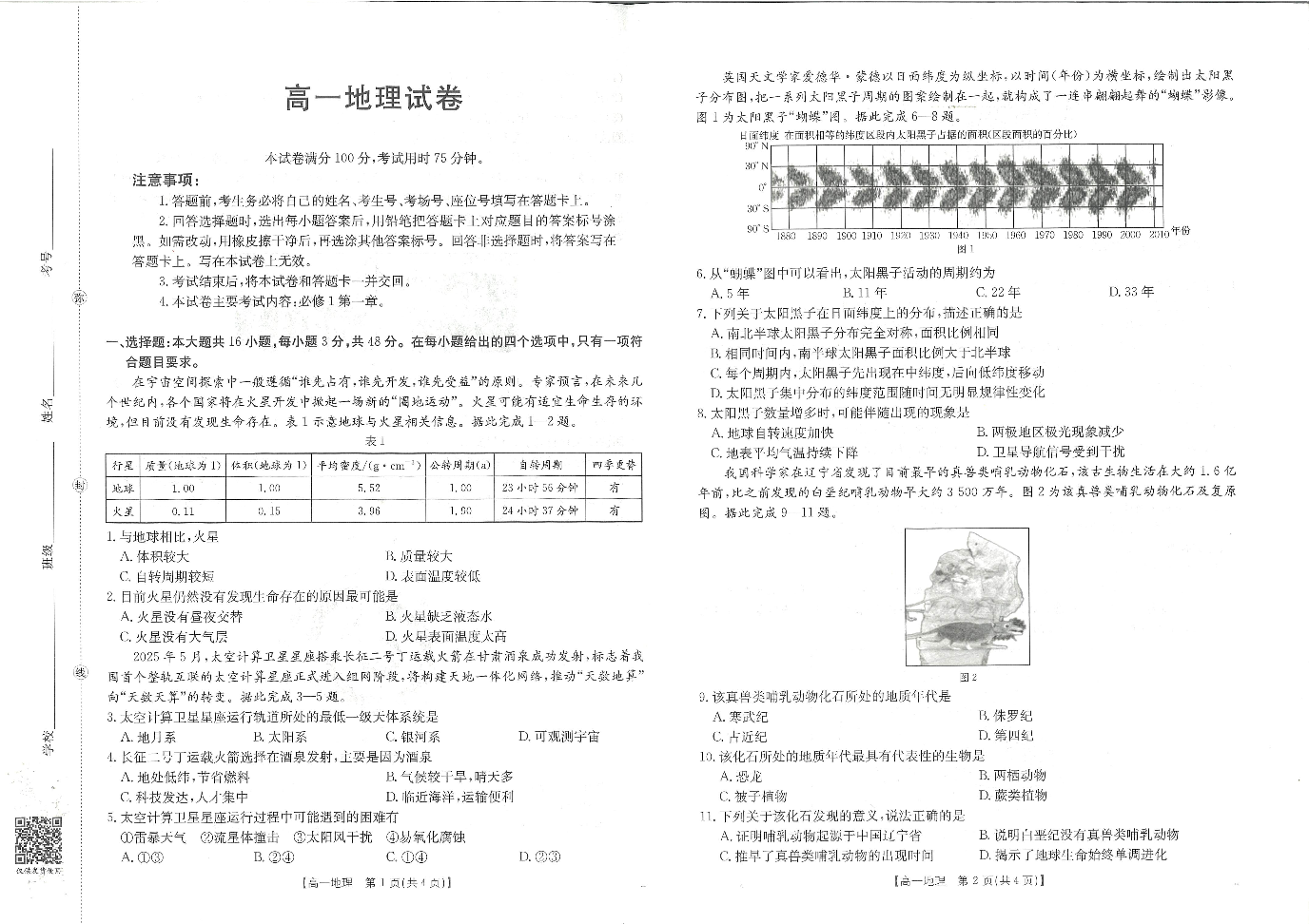 高一地理--江西省2025-2026学期高一上学期10月联考