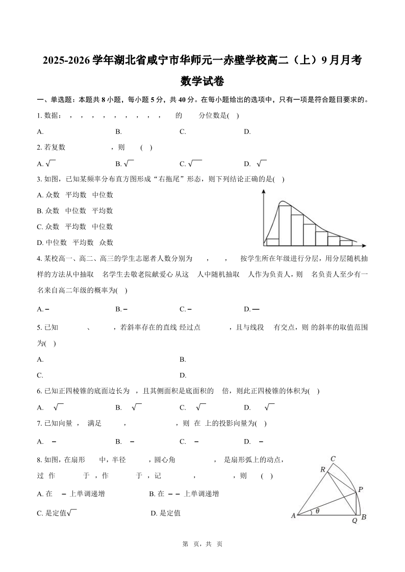 高二数学+答案--湖北省咸宁市华师元一赤壁学校2025-2026学年高二上学期9月月考