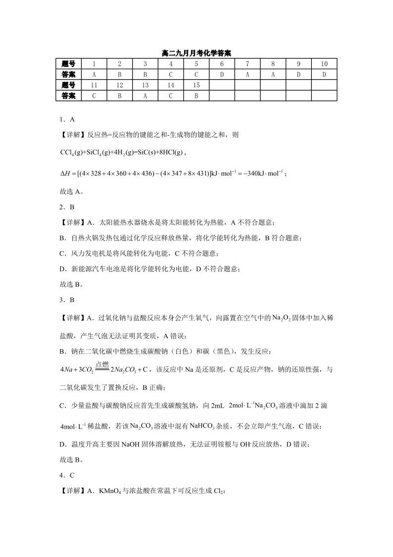 高二化学答案--湖北省咸宁市华师元一赤壁学校2025-2026学年高二上学期9月月考