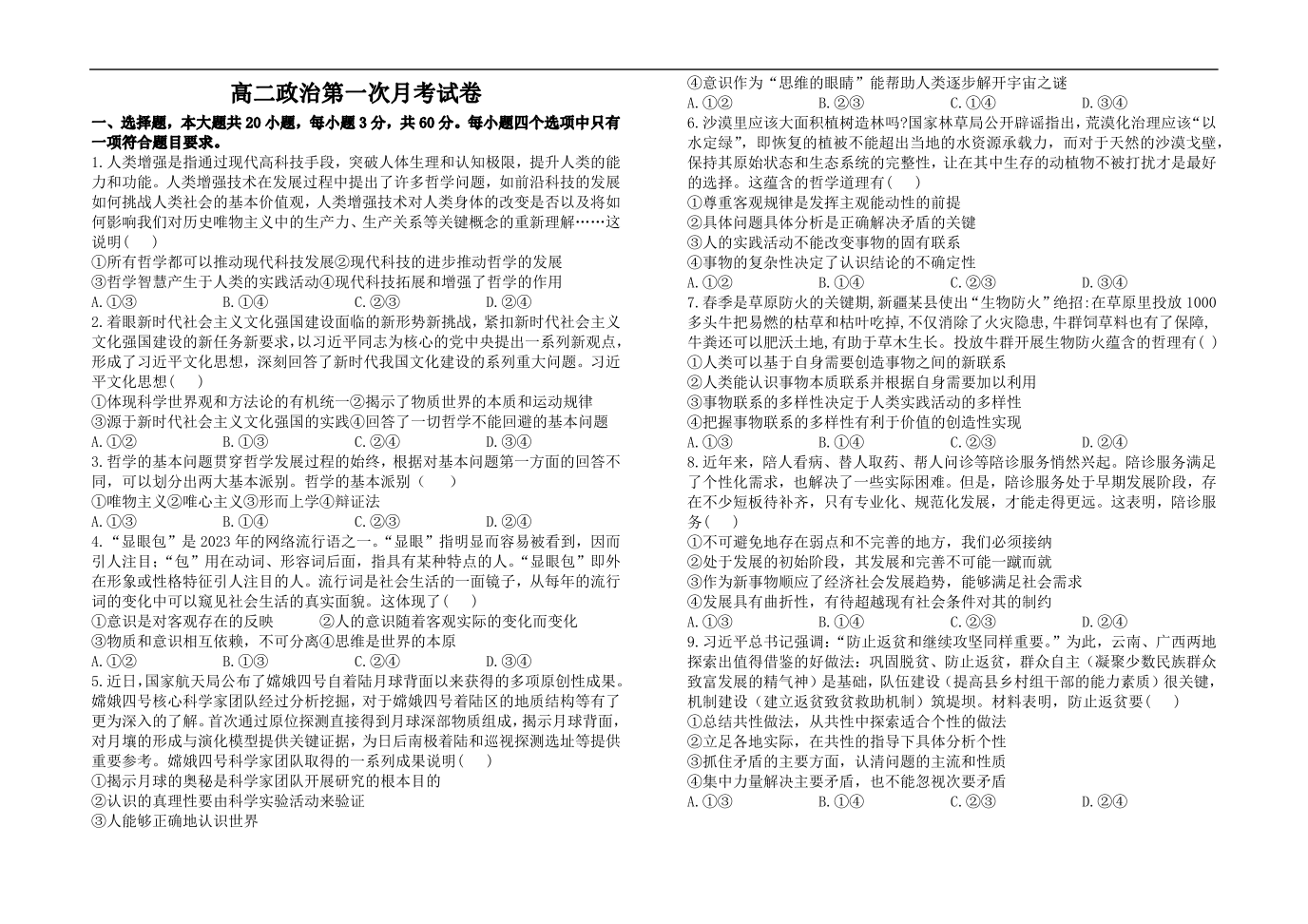 高二政治--江西省上饶市余干县私立蓝天中学2025-2026学年高二上学期第一次月考