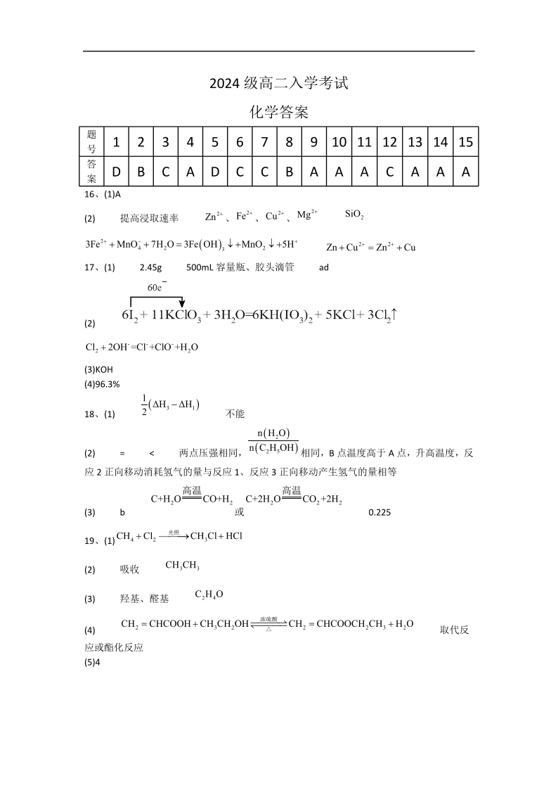 高二化学答案--四川省眉山市仁寿第一中学校(北校区)2025-2026学年高二上学期9月月考