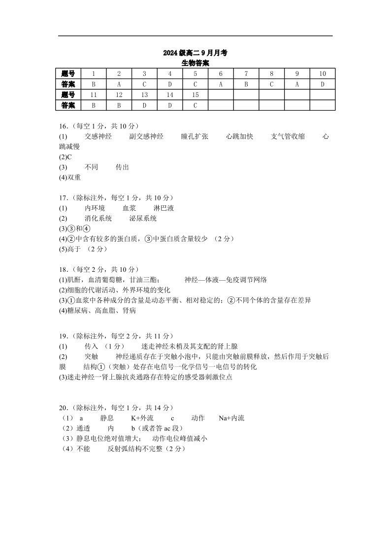 高二生物答案--四川省眉山市仁寿第一中学校(北校区)2025-2026学年高二上学期9月月考