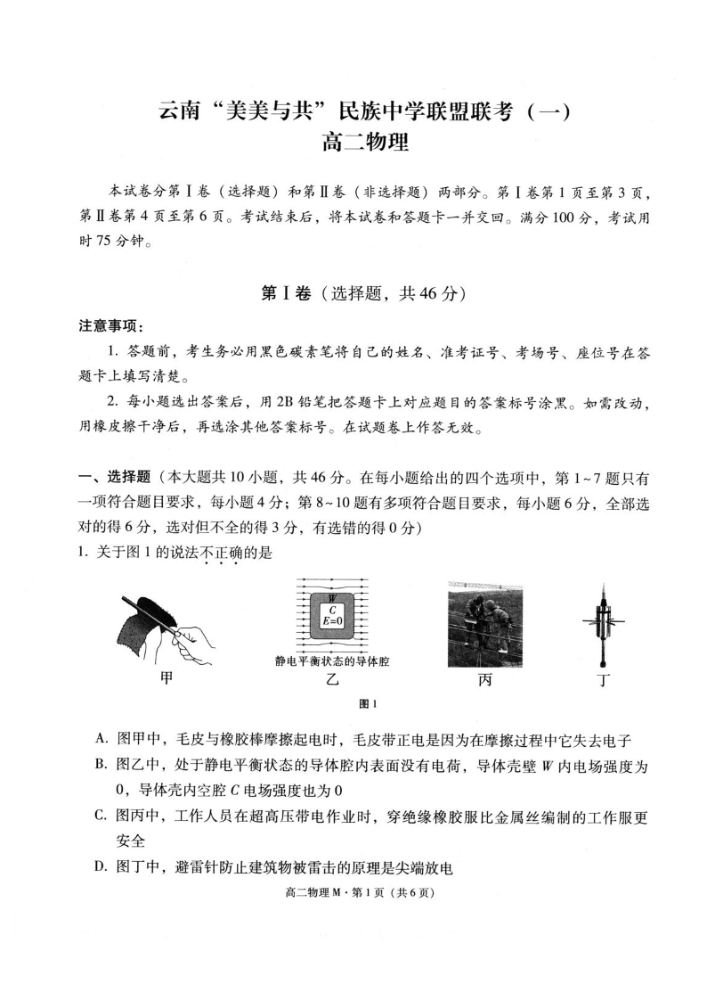 高二物理+答案--云南省“美美与共”民族中学联盟2025-2026学年高二上学期联考(一)