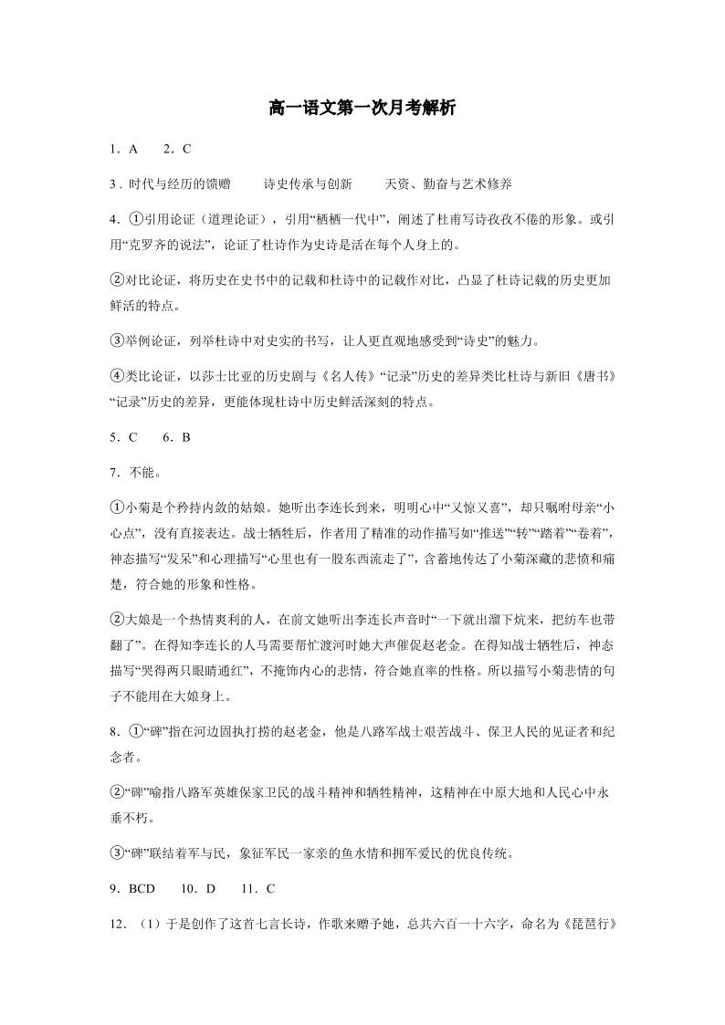 高一语文--福建省厦门英才学校2025-2026学年高一上学期第一次月考