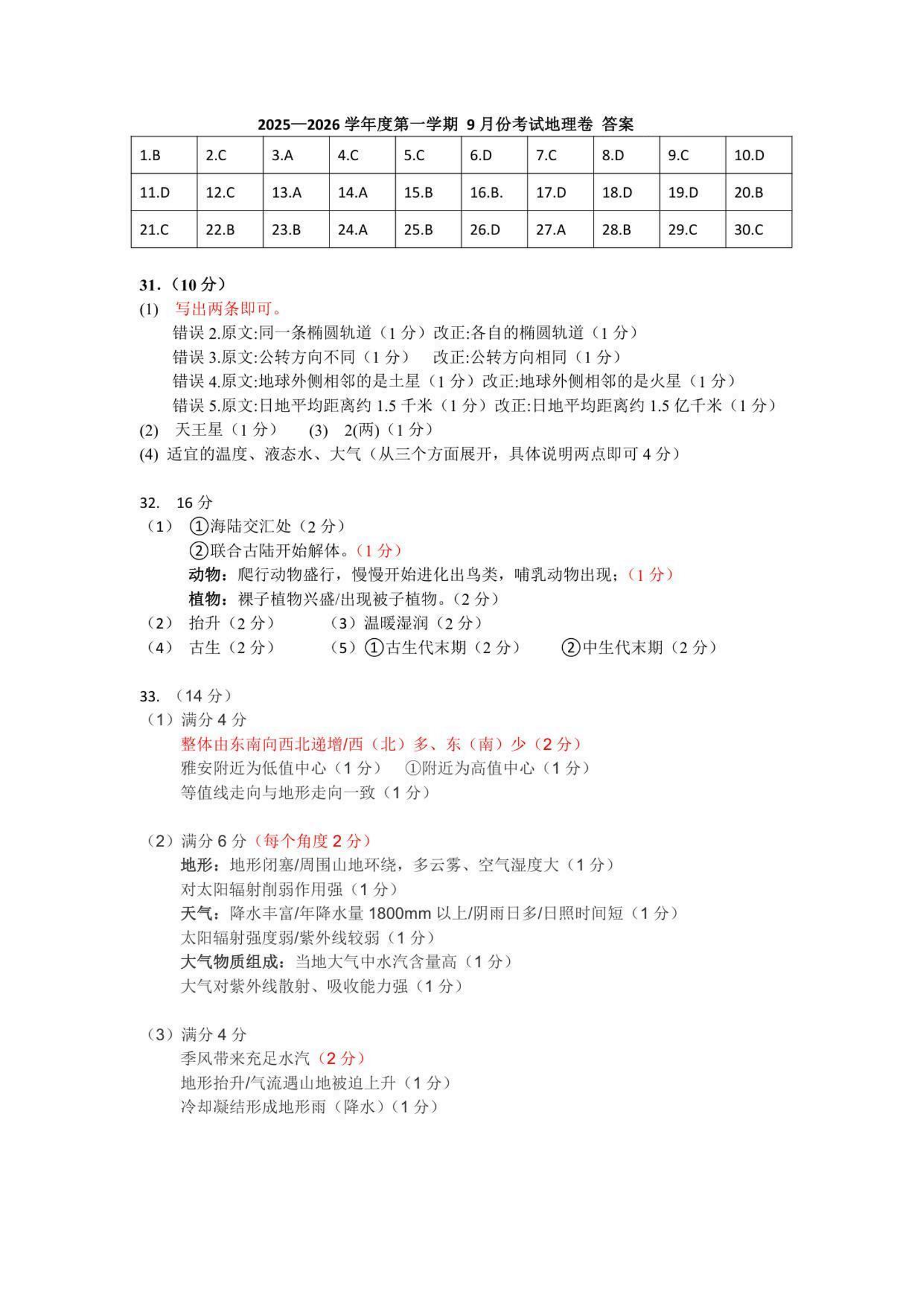 高一地理答案--福建省厦门英才学校2025-2026学年高一上学期第一次月考