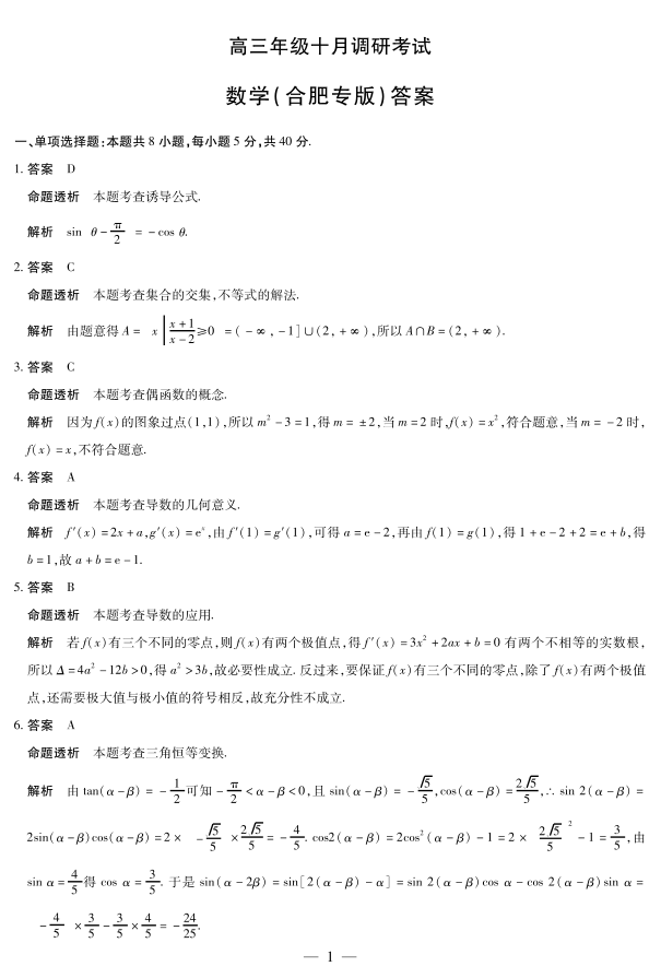 高三数学答案(合肥专版)--安徽天一大联考豫皖联考2026届高三上学期十月调研考试