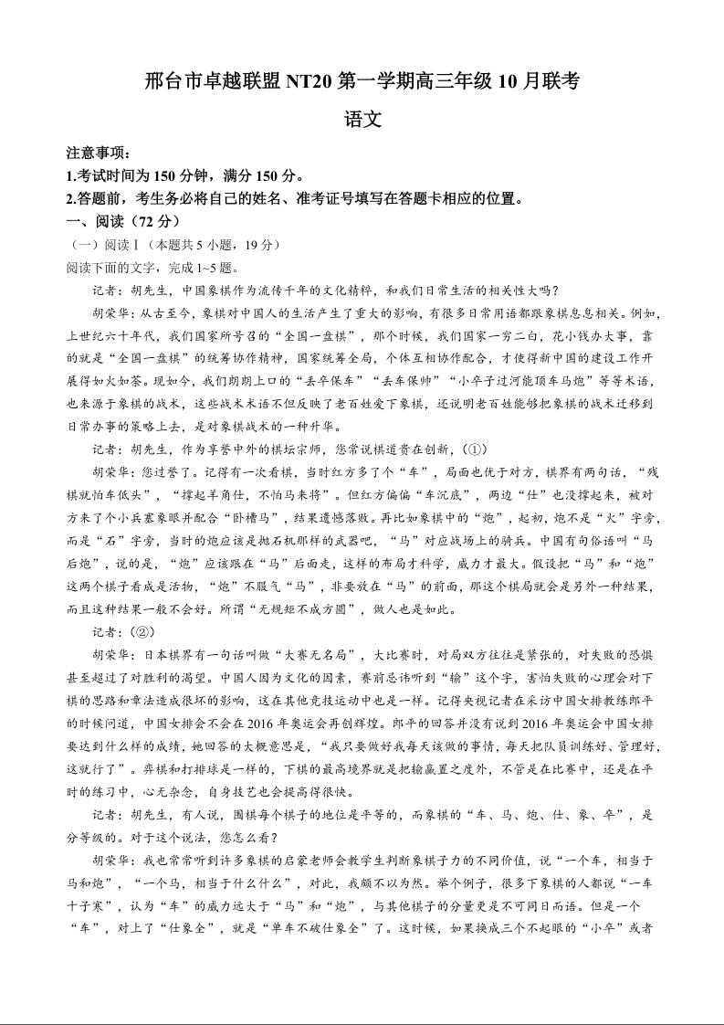 高三语文+答案--河北省NT教育2026届高三上学期10月联考