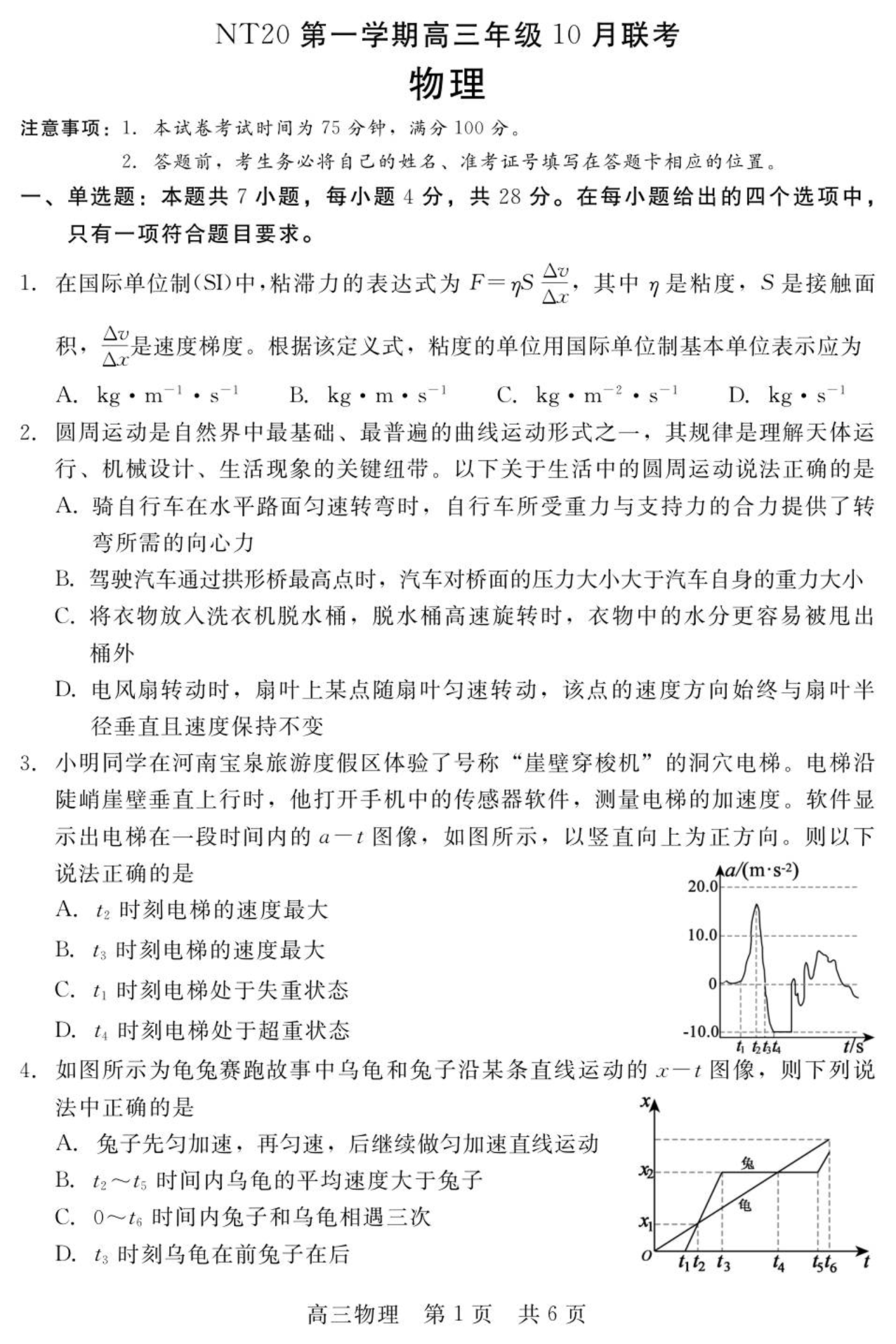 高三物理--河北省NT教育2026届高三上学期10月联考