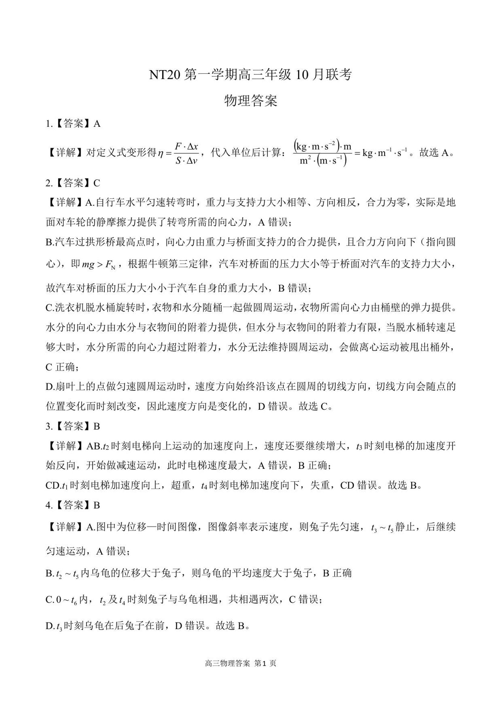 高三物理答案--河北省NT教育2026届高三上学期10月联考