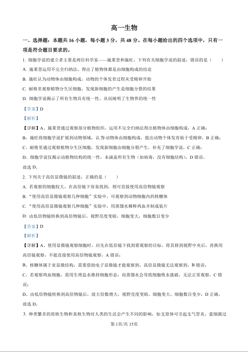 高一生物(精品解析版)--吉林省通化市梅河口市第五中学2025-2026学年高一上学期10月月考