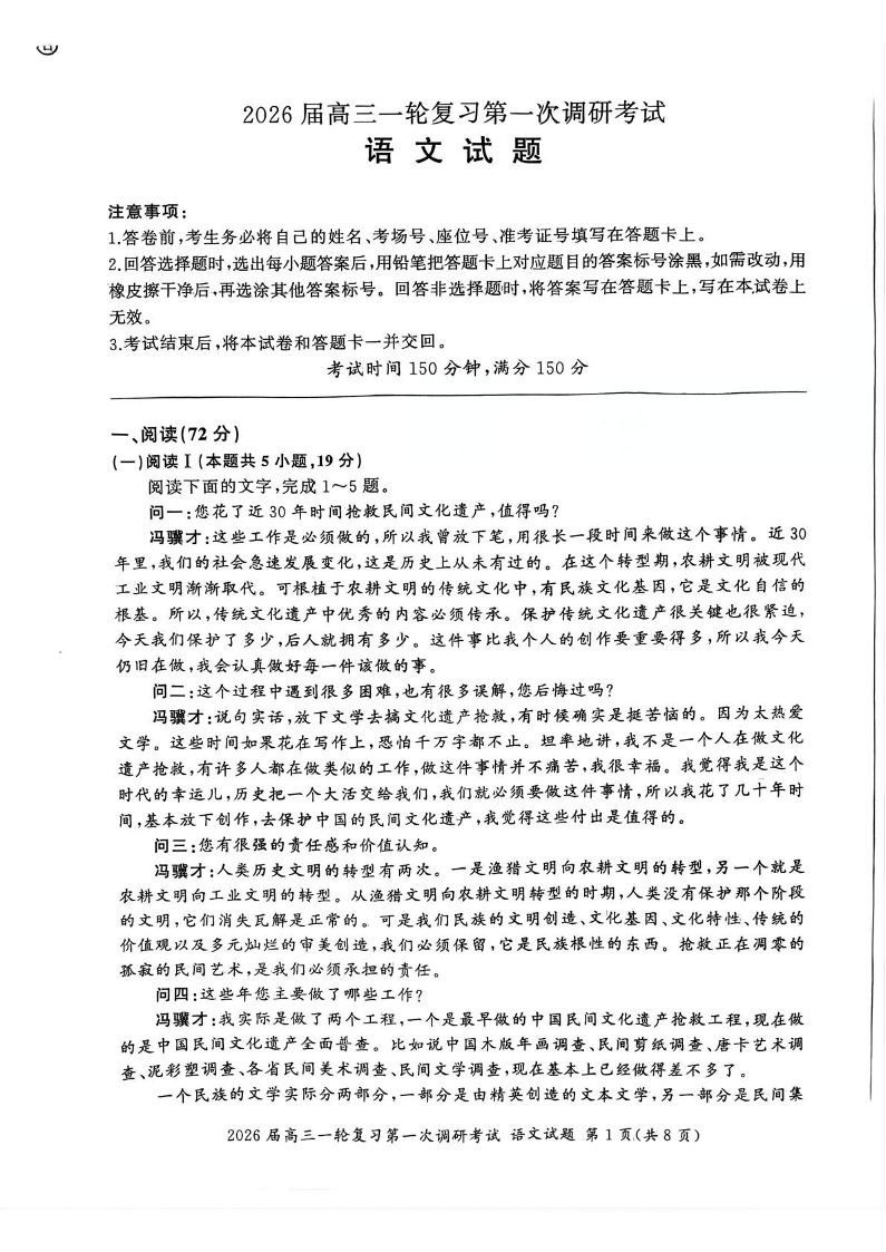 高三语文--百师联盟2026届高三上学期第一次调研考试(10月)