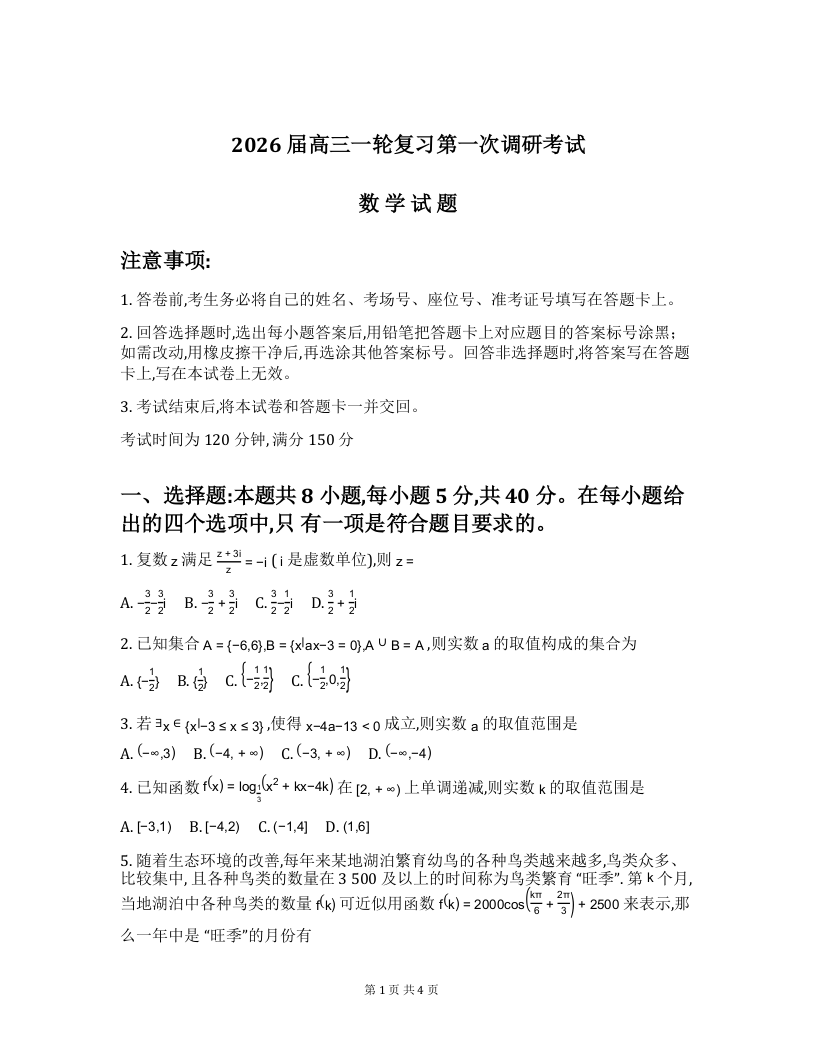 高三数学--百师联盟2026届高三上学期第一次调研考试(10月)