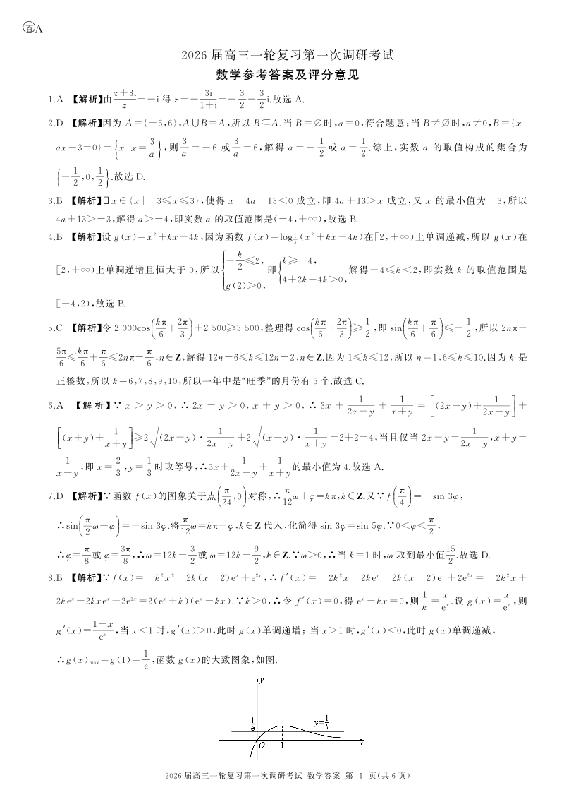 高三数学答案--百师联盟2026届高三上学期第一次调研考试(10月)
