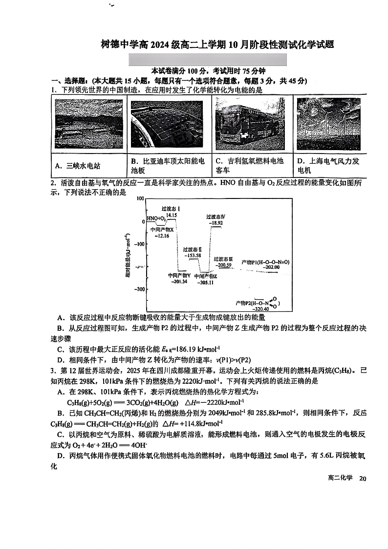 高二化学+答案--四川省成都市树德中学2025-2026学年高二上学期10月月考
