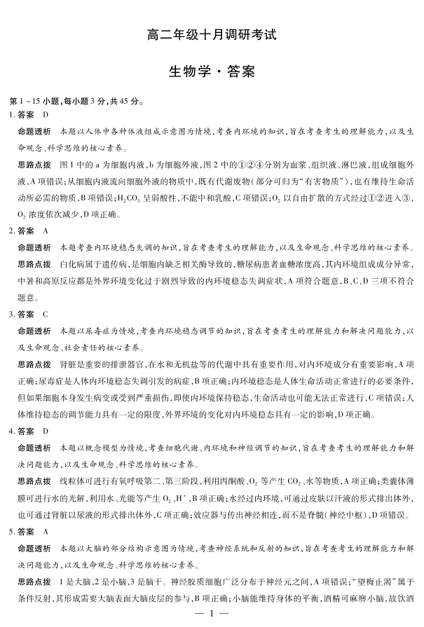 高二生物答案--安徽省天一大联考2025-2026学年高二年级10月调研考试