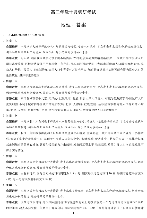 高二地理答案--安徽省天一大联考2025-2026学年高二年级10月调研考试
