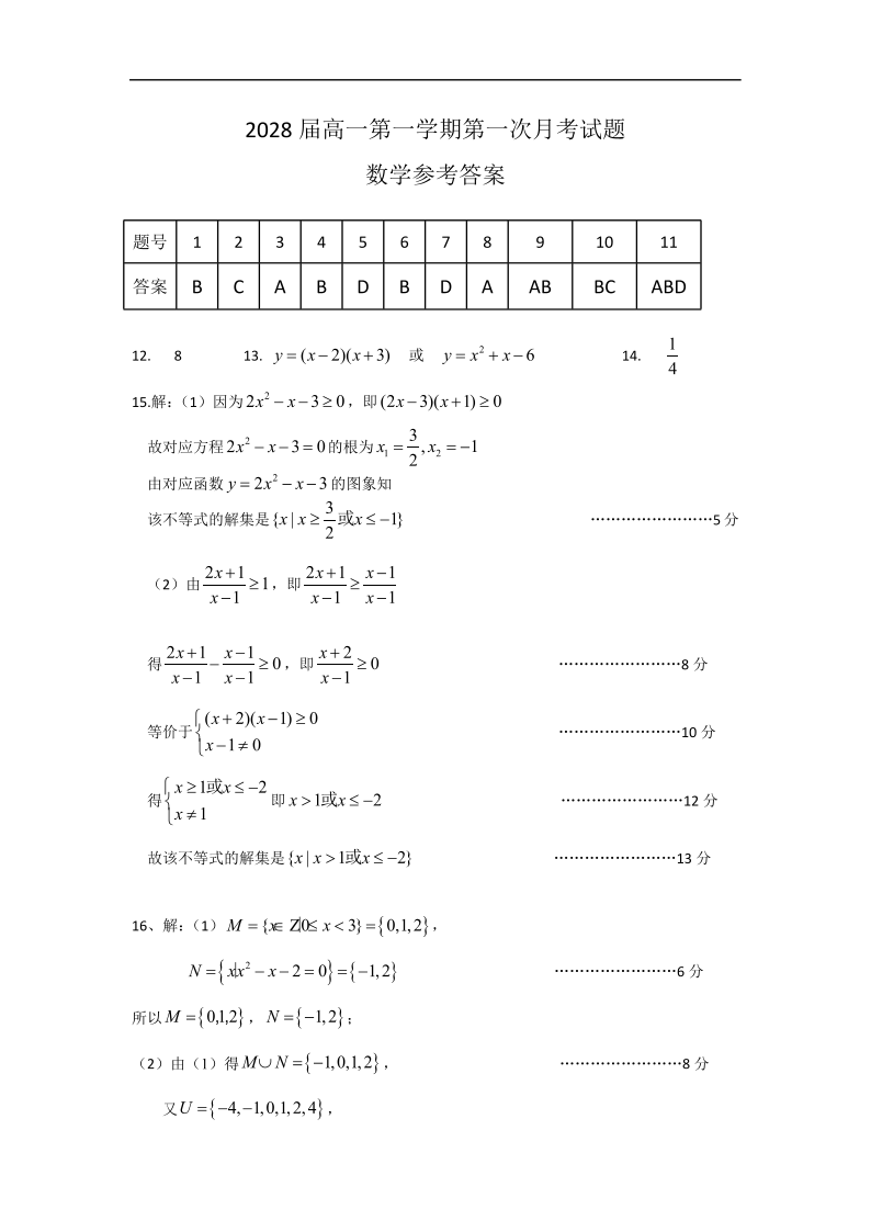高一数学答案--陕西省汉中市西乡县第一中学2025-2026学年高一上学期9月月考