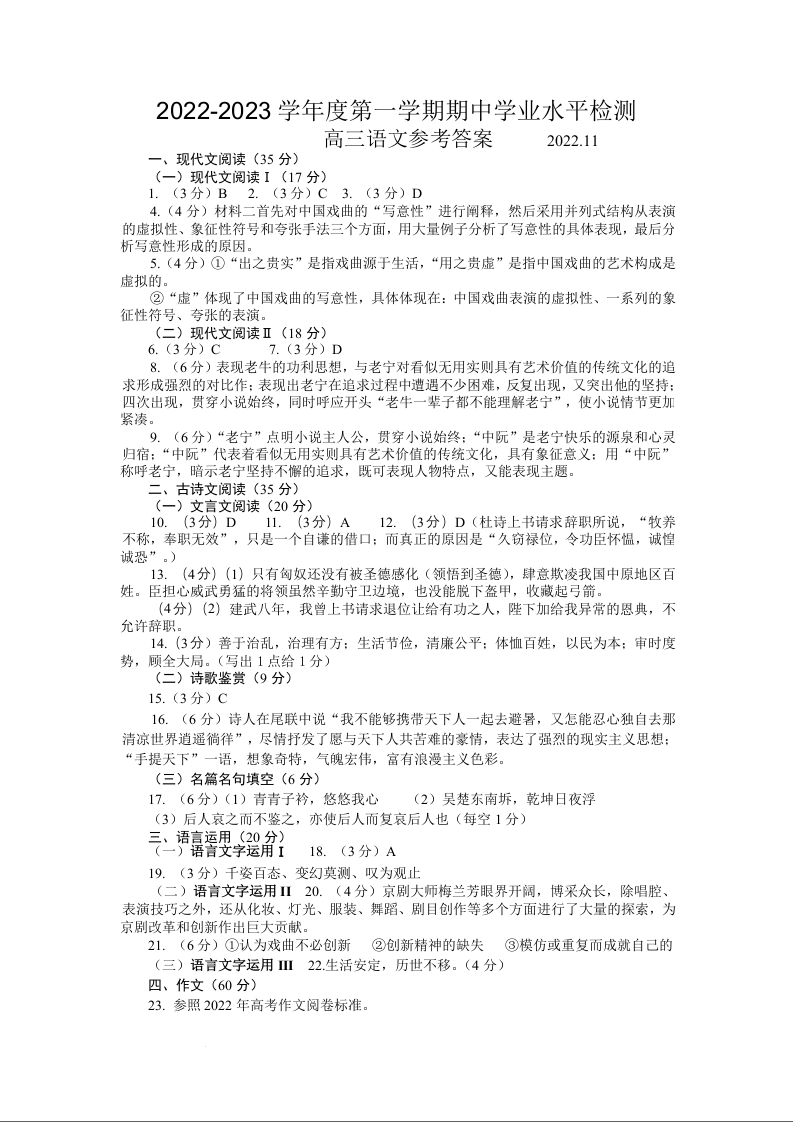 高三语文答案--山东省青岛区域2023届高三上学期期中考试